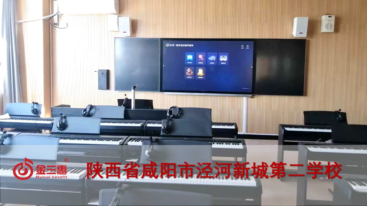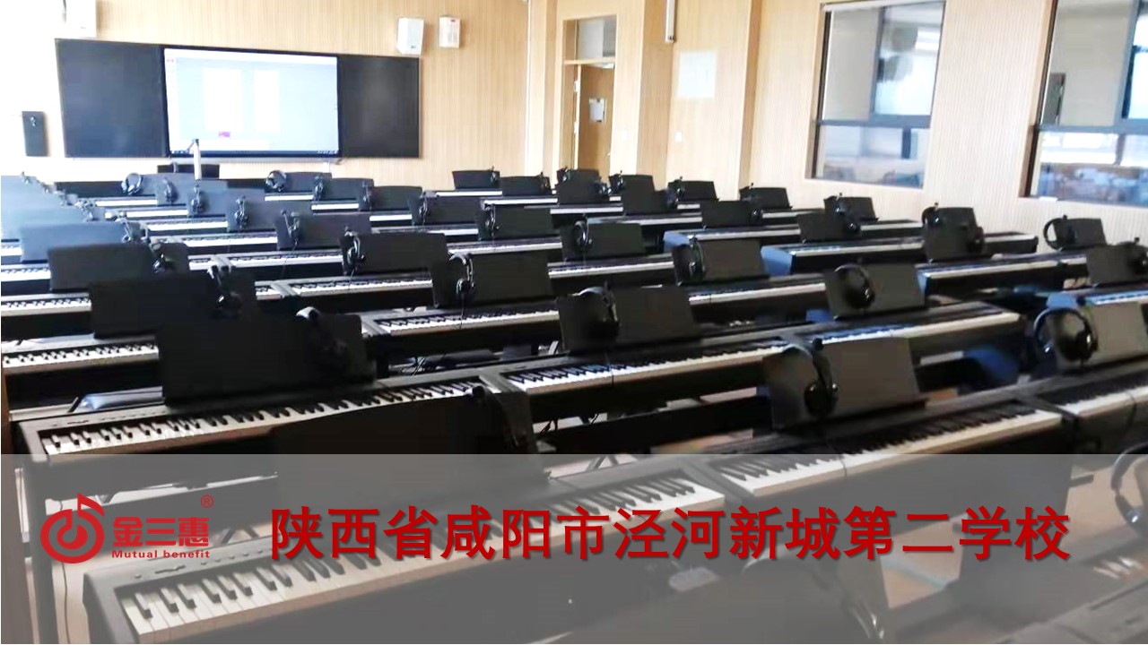陜西省咸陽市涇河新城第二學校的數字音樂電鋼琴教室正式開始使用,本校電鋼琴教室由北京金三惠科技有限公司負責提供、安裝、培訓。