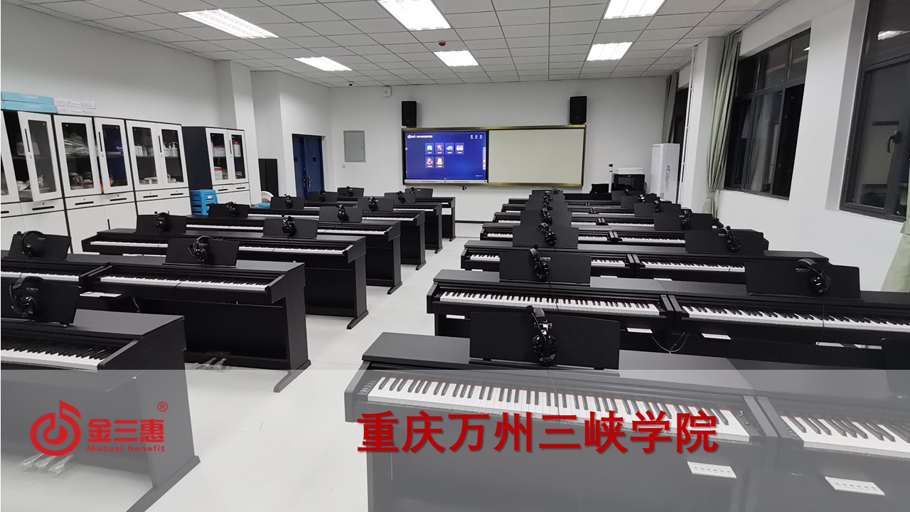 重慶萬州三峽學院的數字音樂電鋼琴教室開始使用,本校數字化音樂教室由北京金三惠科技有限公司負責提供、安裝、培訓。