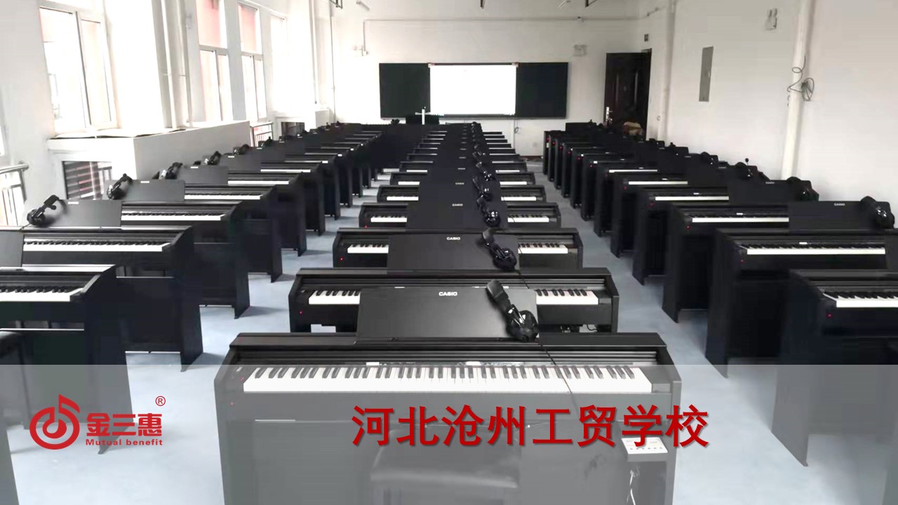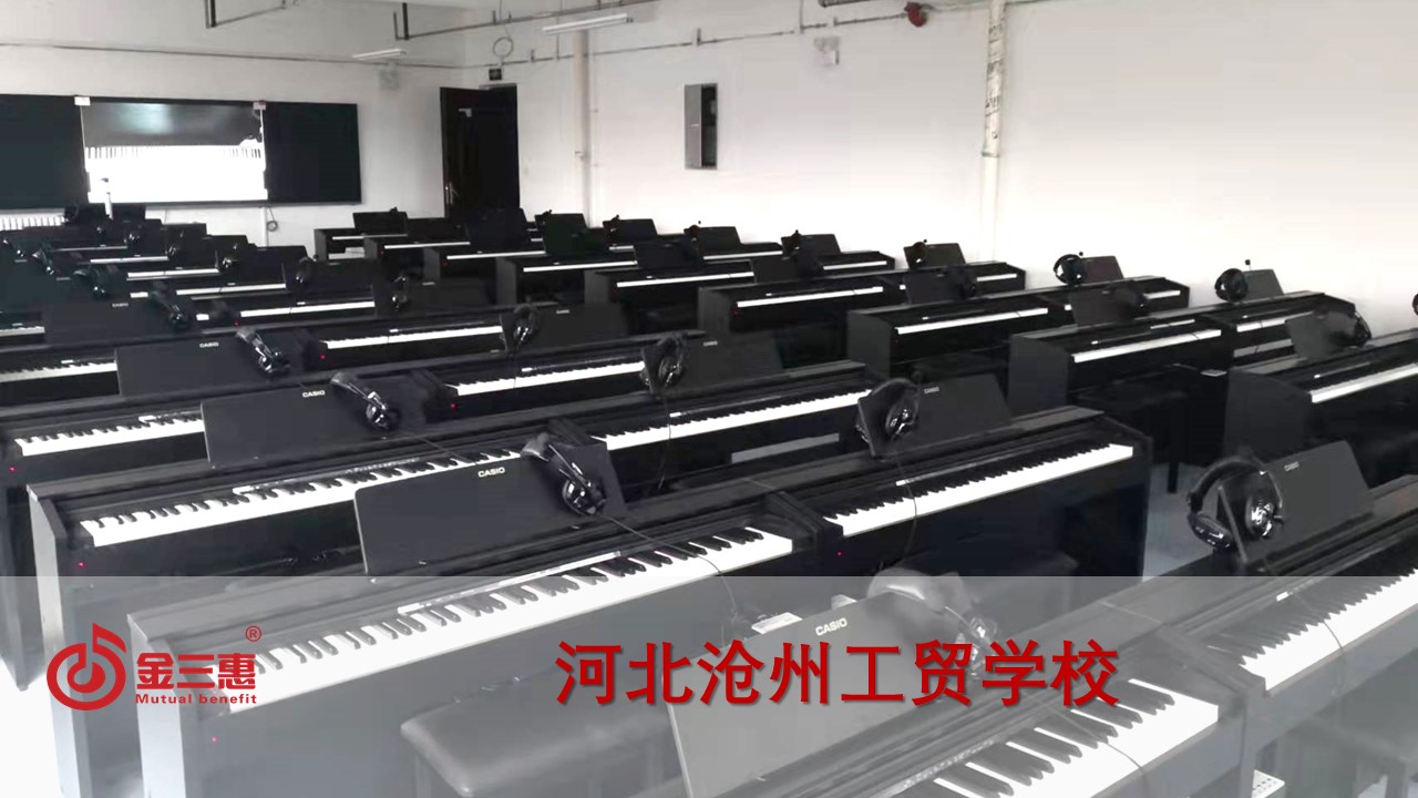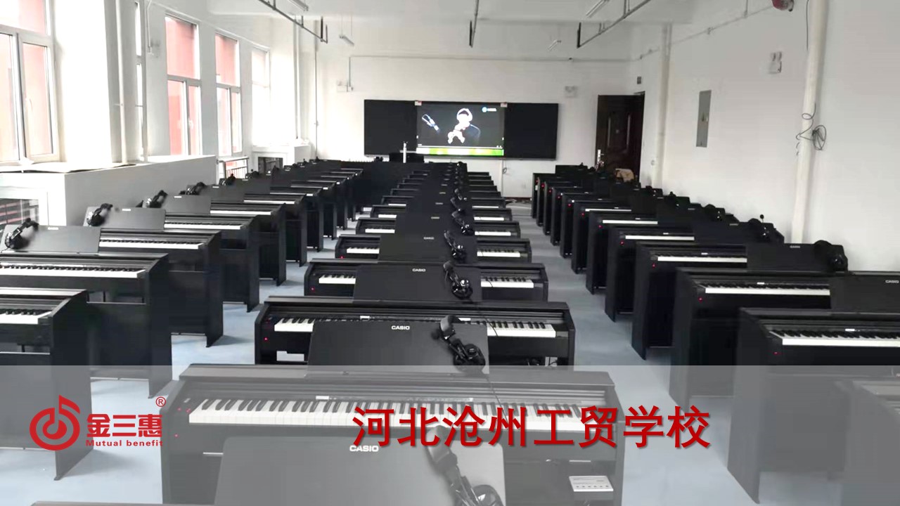 河北滄州工貿學校的數字音樂電鋼琴教室開始使用,本校數字化音樂教室由北京金三惠科技有限公司負責提供、安裝、培訓。