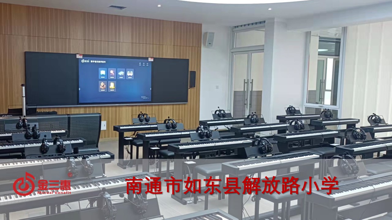 南通市如東縣解放路小學(xué)的數(shù)字音樂(lè)電鋼琴教室開始使用,由北京金三惠科技有限公司負(fù)責(zé)提供、安裝、培訓(xùn)。