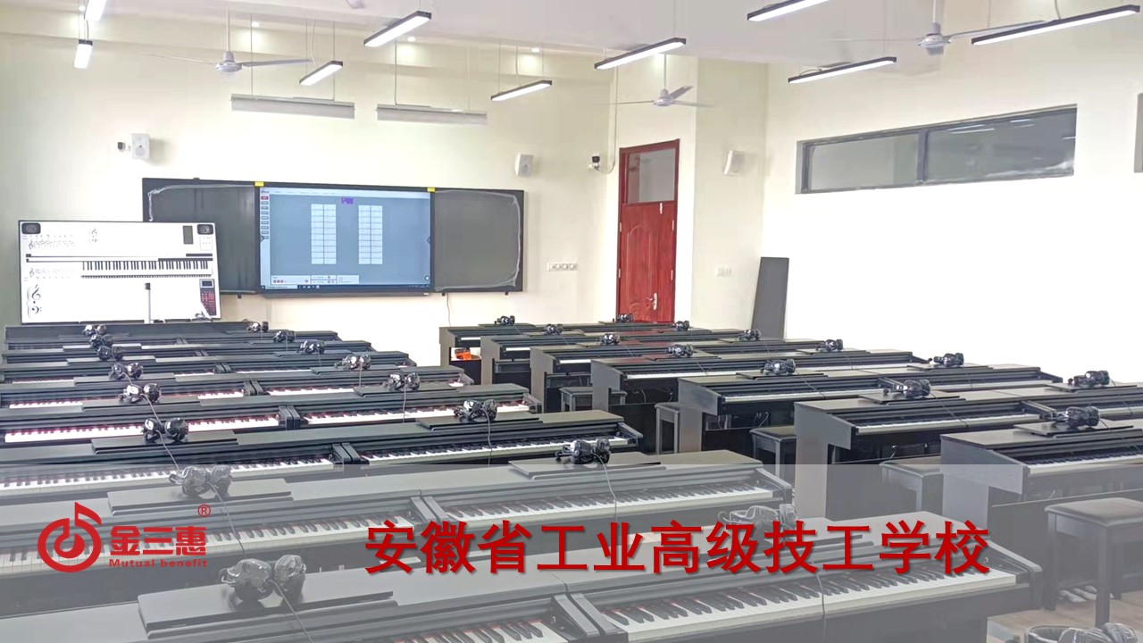 安徽省工業高級技工學校的數字音樂電鋼琴教室開始使用,由北京金三惠科技有限公司負責提供、安裝、培訓。