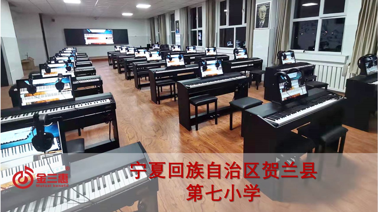 寧夏回族自治區賀蘭縣第七小學的智慧音樂創客教室正式開始使用,本校音樂創客教室由北京金三惠科技有限公司負責提供產品、安裝及培訓。金三惠依據客戶需求,提供了數字化音樂創客教學整體方案,配備25+1的音樂創客教學軟件、智慧鋼琴1018C等整套設施。