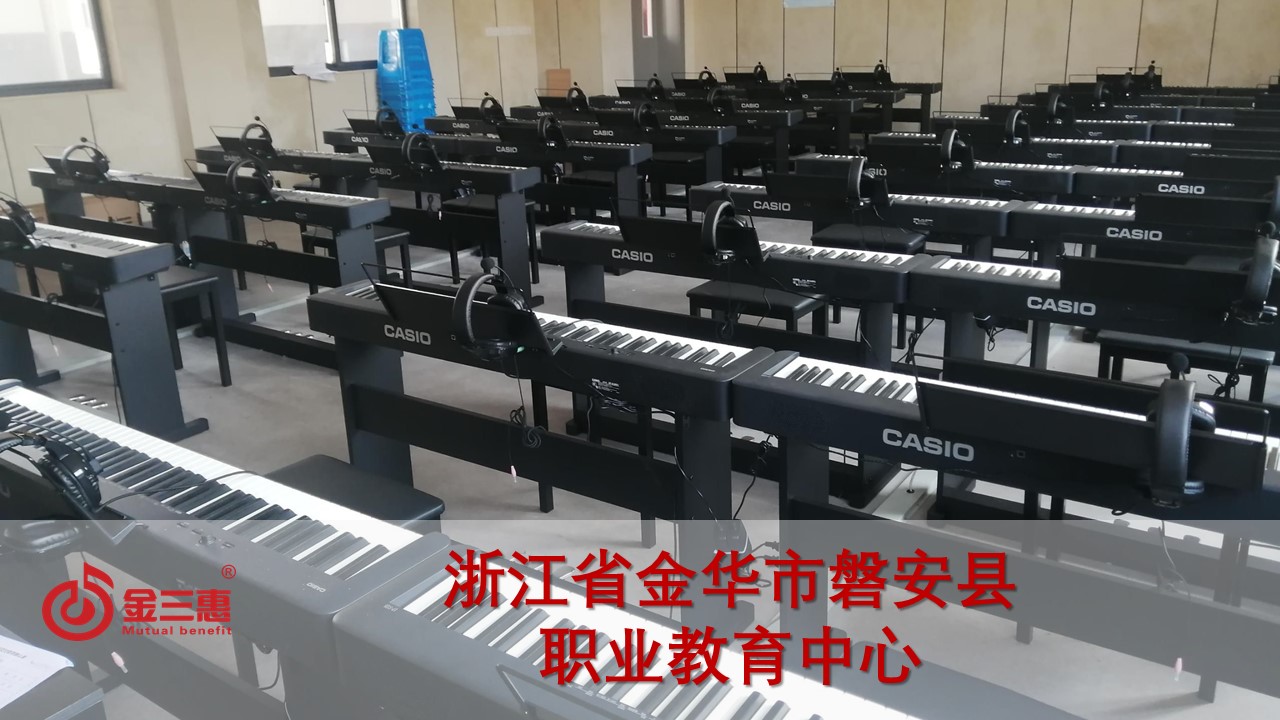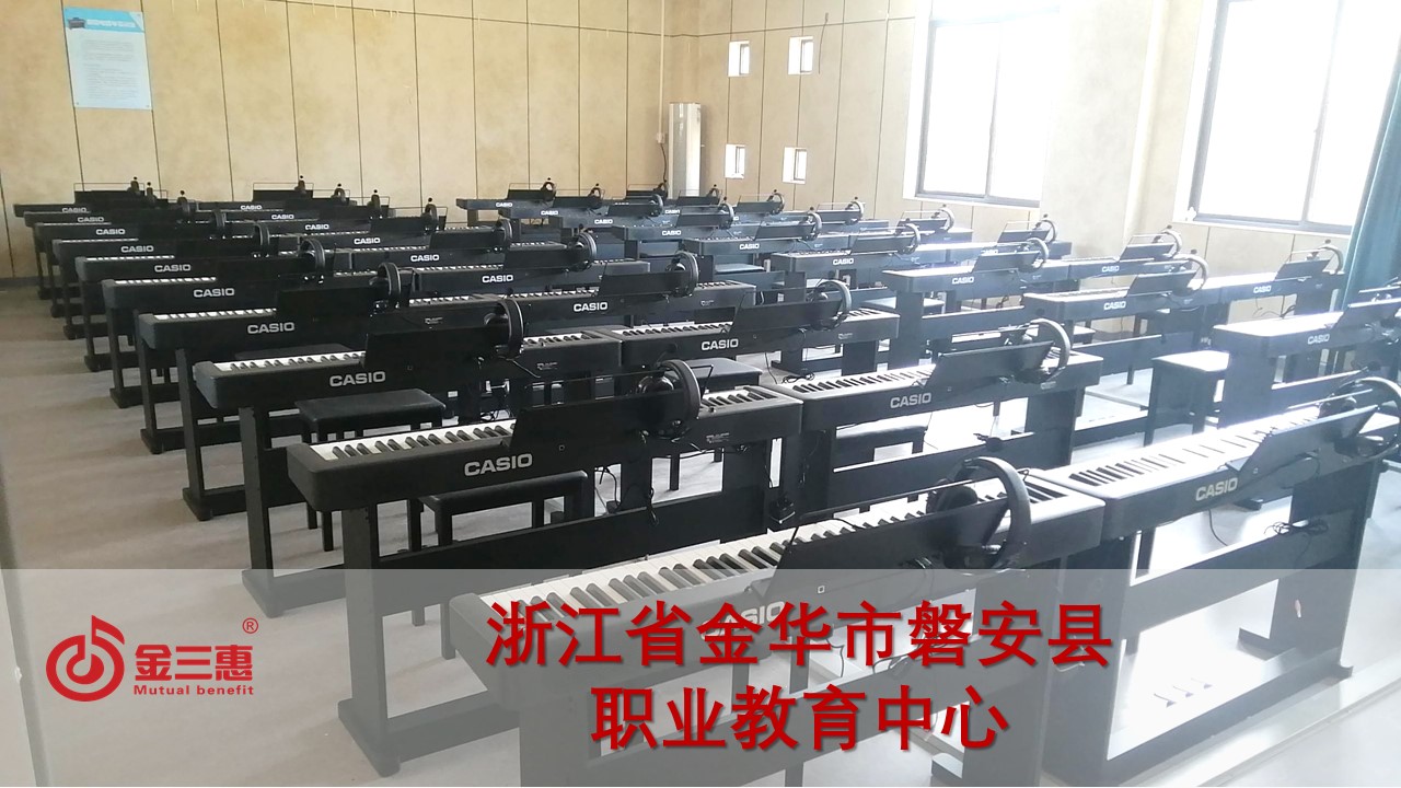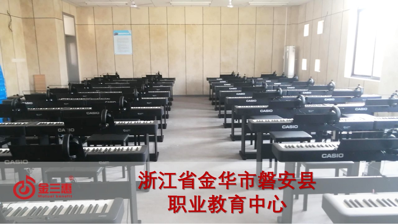 浙江省金華市磐安縣職業教育中心的數字音樂電鋼琴教室開始使用,由北京金三惠科技有限公司負責提供、安裝、培訓。