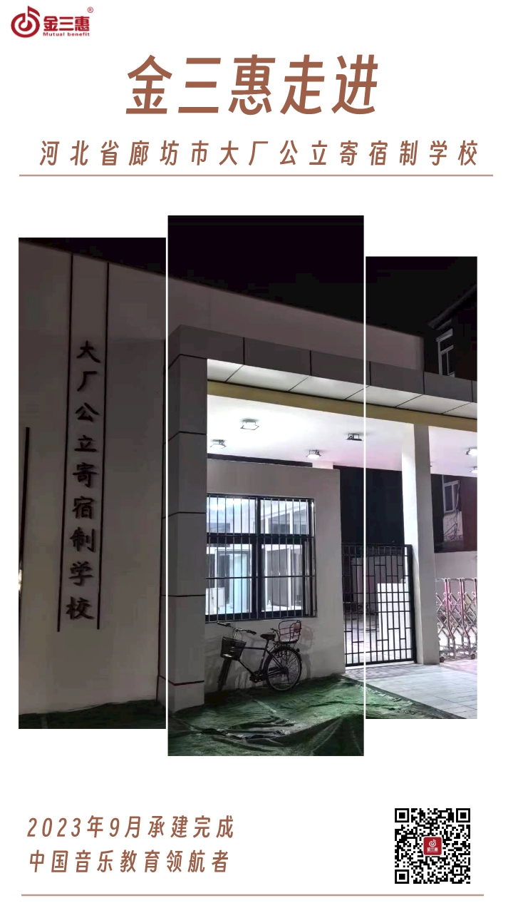 2023年9月,金三惠數字音樂教室走進河北省廊坊市大廠公立寄宿制學校,為學生提供了45+1的電鋼琴教室,配備了金三惠電鋼琴教學系統、電鋼琴、數字音樂教學儀等教學教具等。電鋼琴室-金三惠 (jinsanhui.com)