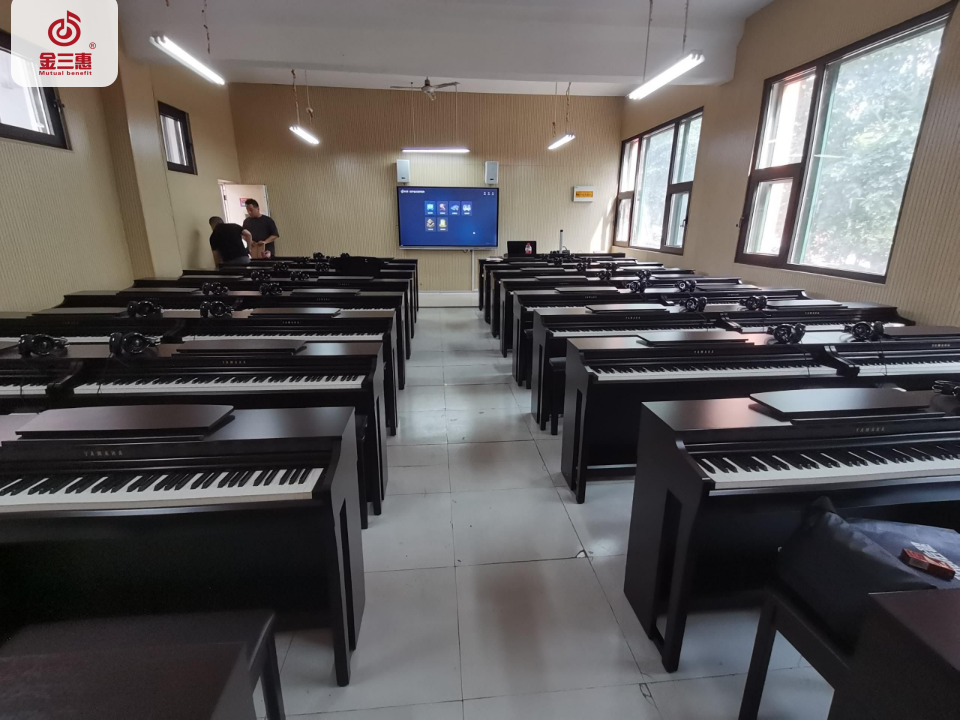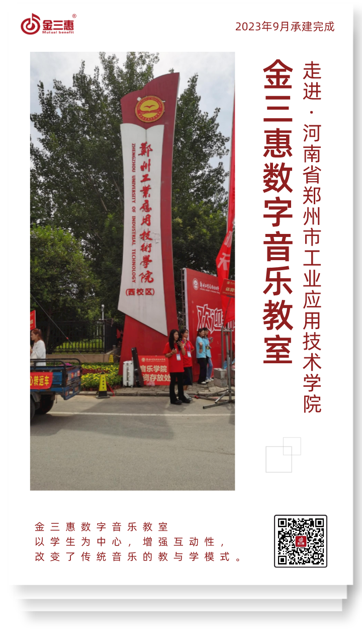 2023年9月,金三惠數字音樂教室走進河南省鄭州市工業應用技術學院,為學生提供了36+1的電鋼琴教室,配備了金三惠電鋼琴教學系統、電鋼琴、數字音樂教學儀等教學教具等。