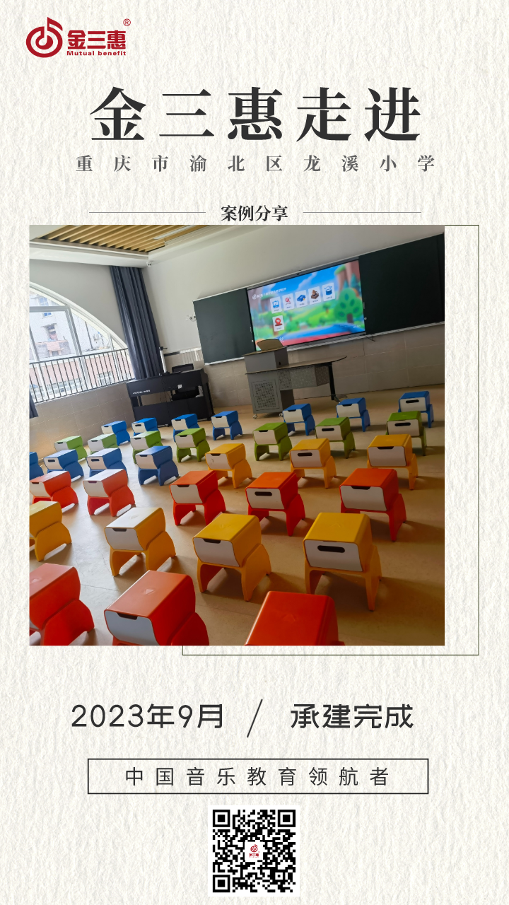 2023年9月,金三惠數字音樂教室為重慶市渝北區龍溪小學提供、安裝、培訓的常規數字化音樂教室(國標)正式開始使用!配備了金三惠教學系統、電鋼琴、數字音樂教學儀、學生樂器等教學教具。國標室-金三惠 (jinsanhui.com)