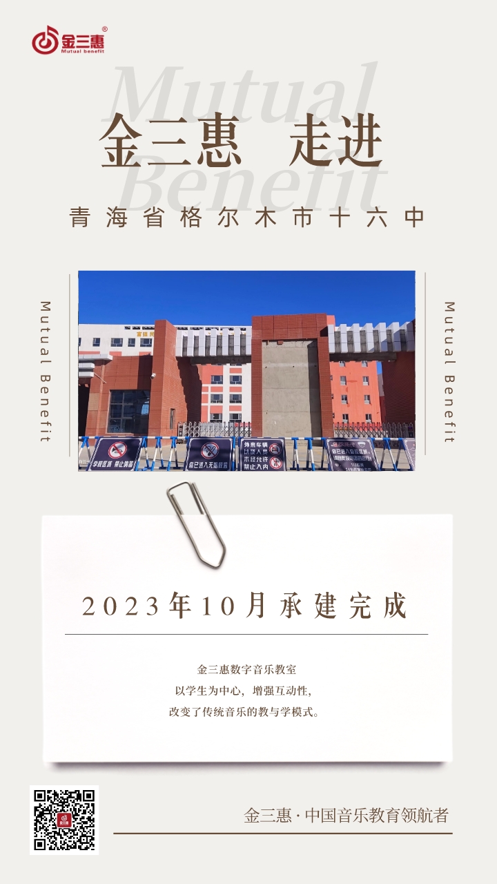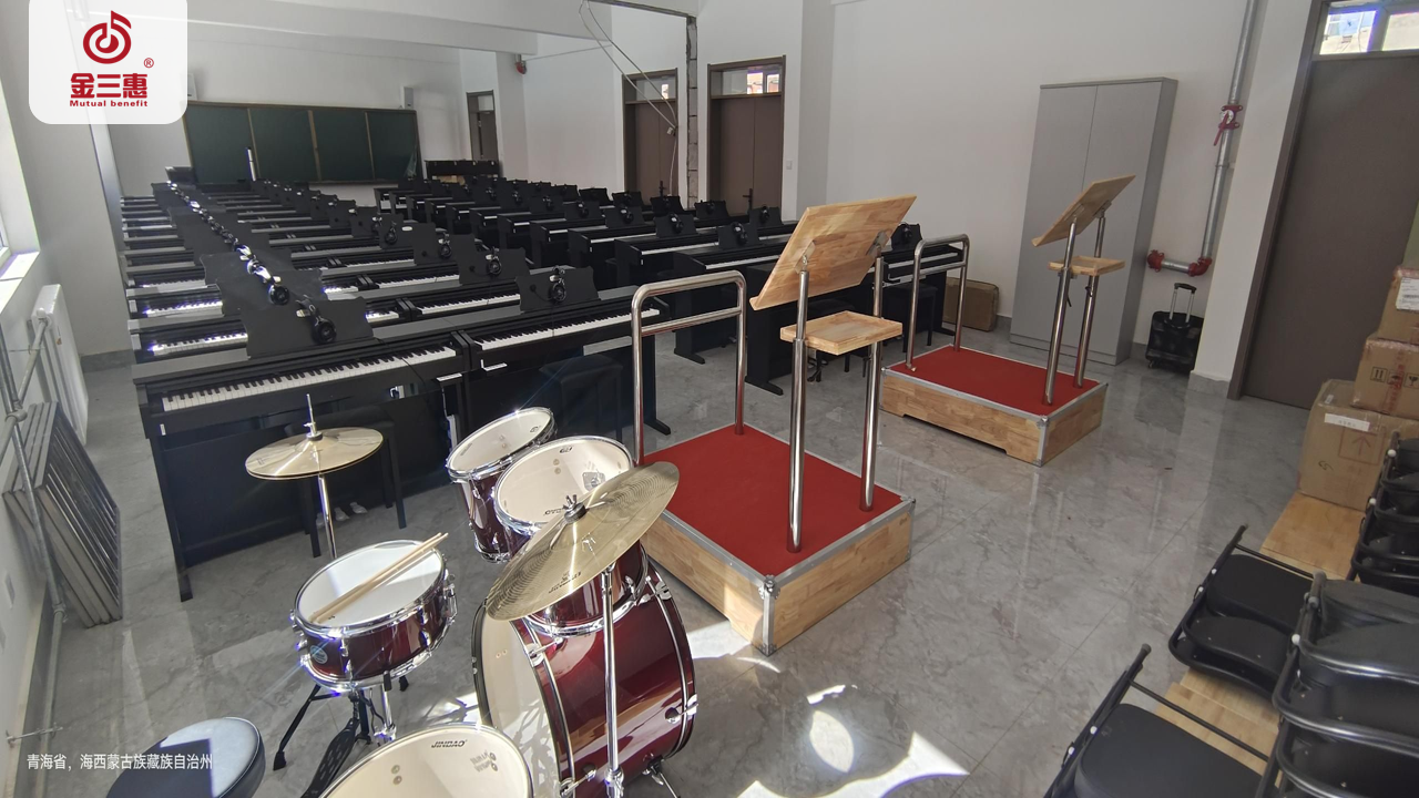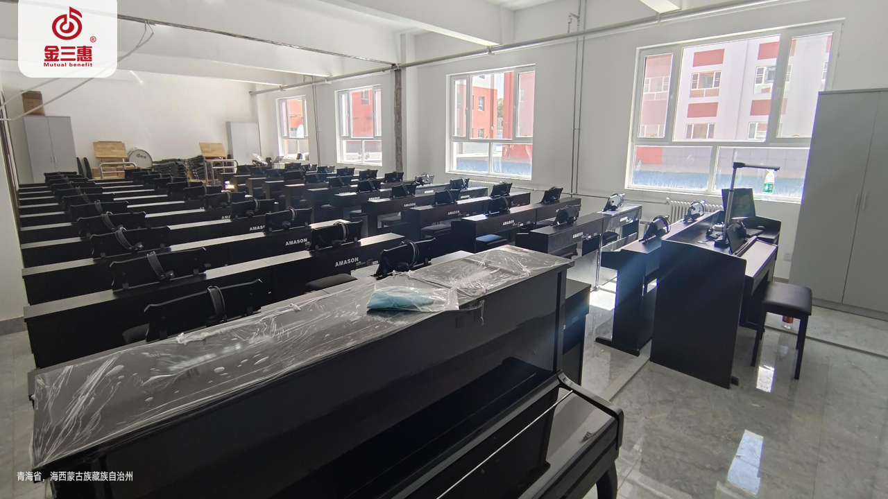 2023年10月,金三惠數字音樂教室走進青海省格爾木市十六中,為學生提供了48+1的電鋼琴教室+器材教室配備了金三惠電鋼琴教學系統、電鋼琴、數字音樂教學儀等教學教具等。電鋼琴室-金三惠 (jinsanhui.com)