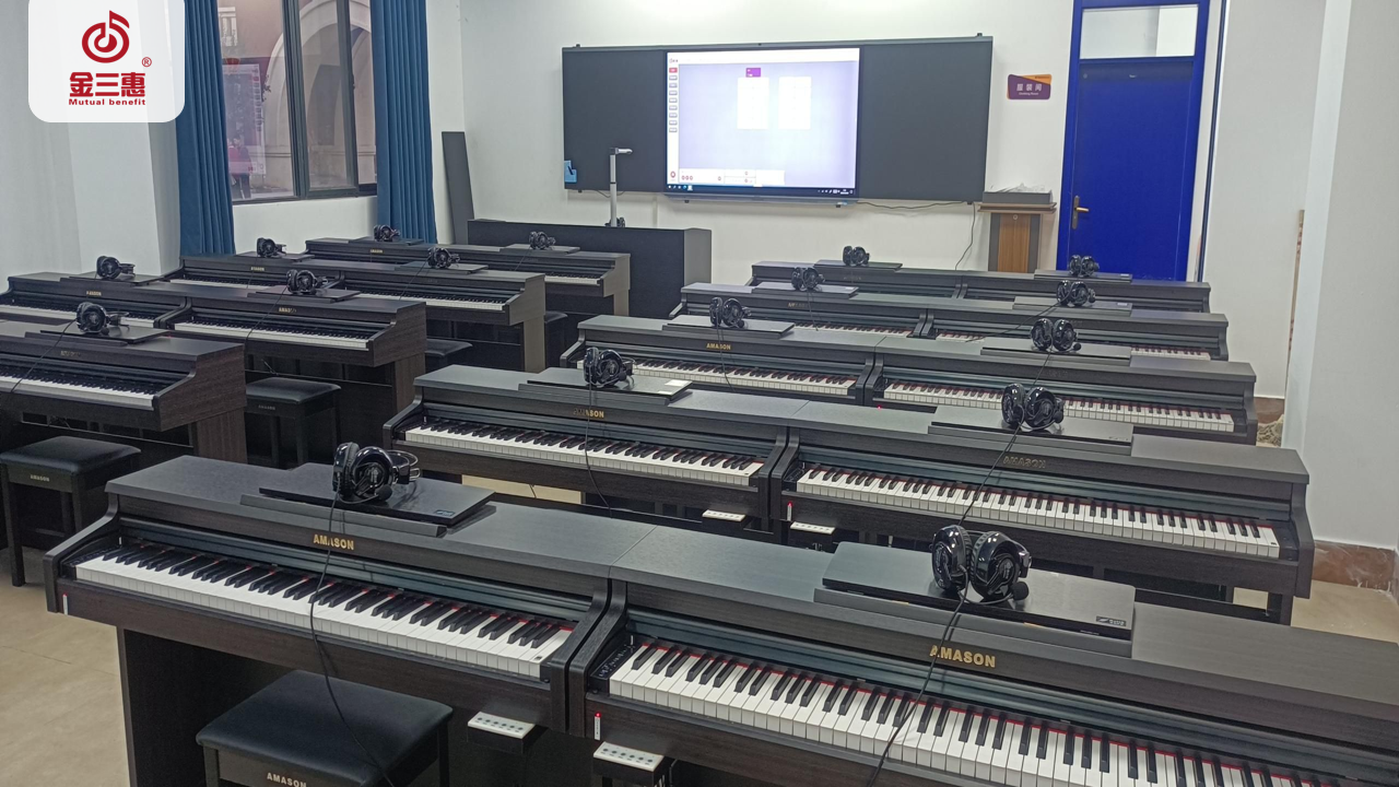 2023年10月,金三惠數字音樂教室走進陜西省西咸新區黃岡涇河學校,為學生提供了20+1的電鋼琴教室配備了金三惠電鋼琴教學系統、電鋼琴、數字音樂教學儀等教學教具等。電鋼琴室-金三惠 (jinsanhui.com)