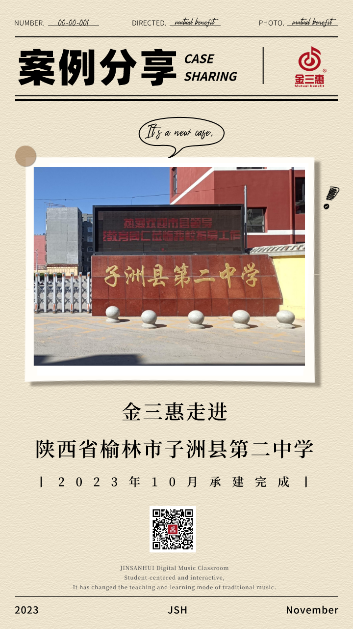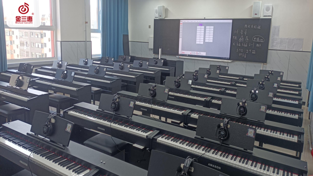 2023年10月,金三惠數字音樂教室走進陜西省榆林市子洲縣第二中學,為學生提供了30+1的電鋼琴教室,配備了金三惠電鋼琴教學系統、電鋼琴、數字音樂教學儀等教學教具等。電鋼琴室-金三惠 (jinsanhui.com)