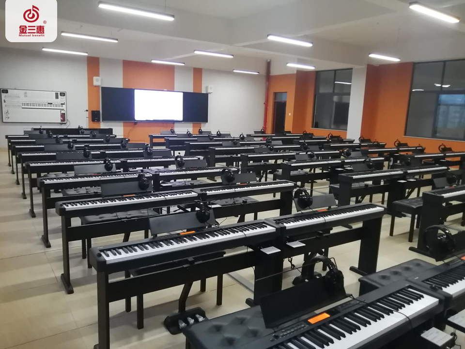 2023年10月,金三惠數字音樂教室走進海南省�?谑袊d中學,為學生提供了50+1的電鋼琴教室,配備了金三惠電鋼琴教學系統、電鋼琴、數字音樂教學儀等教學教具等。電鋼琴室-金三惠 (jinsanhui.com)