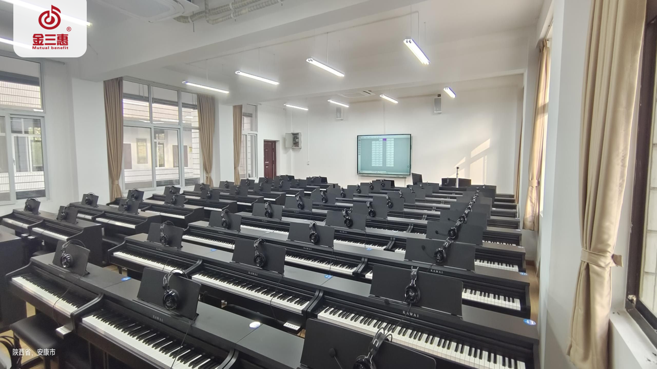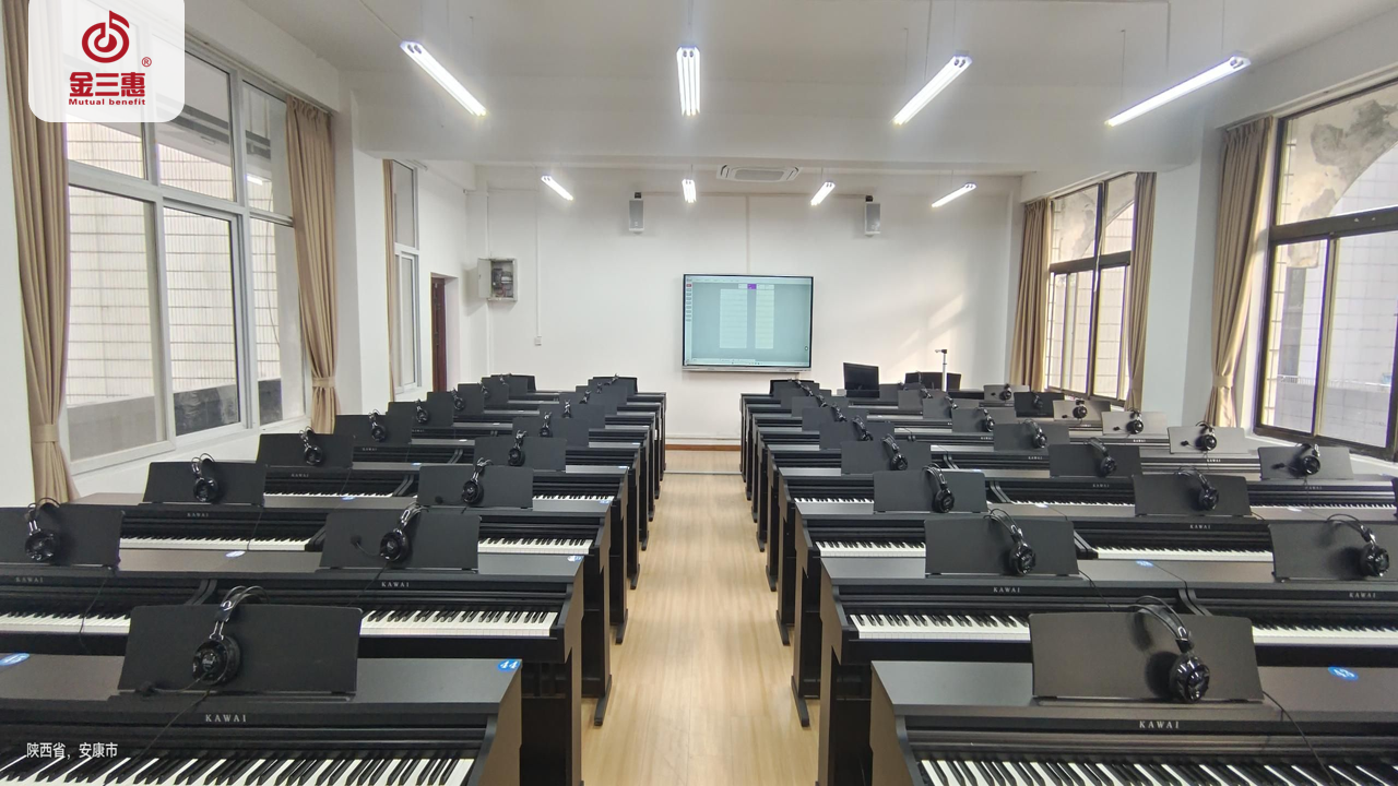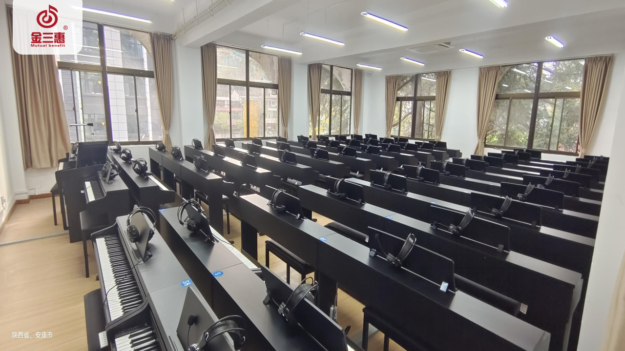 2023年11月,金三惠數字音樂教室走進陜西省安康職業技術學院,為學校提供了兩套58+1和一套62+1的電鋼琴教室配備了金三惠電鋼琴教學系統、電鋼琴、數字音樂教學儀等教學教具等。電鋼琴室-金三惠 (jinsanhui.com)