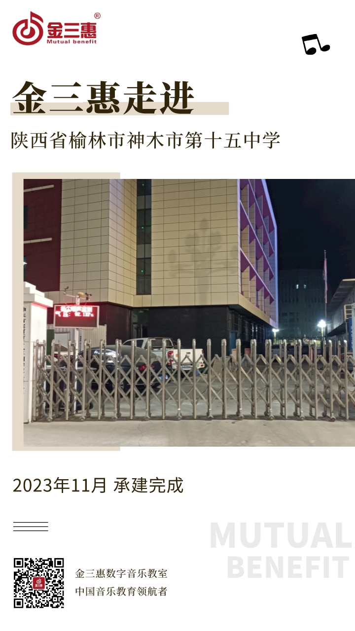 2023年11月,金三惠數(shù)字音樂教室為陜西省榆林市神木市第十五中學(xué)以及該校小學(xué)部提供、安裝、培訓(xùn)的2套23+1智慧創(chuàng)客音樂教室正式開始使用!配備了金三惠教學(xué)系統(tǒng)、電鋼琴、數(shù)字音樂教學(xué)儀等教學(xué)教具。創(chuàng)客教室-金三惠 (jinsanhui.com)