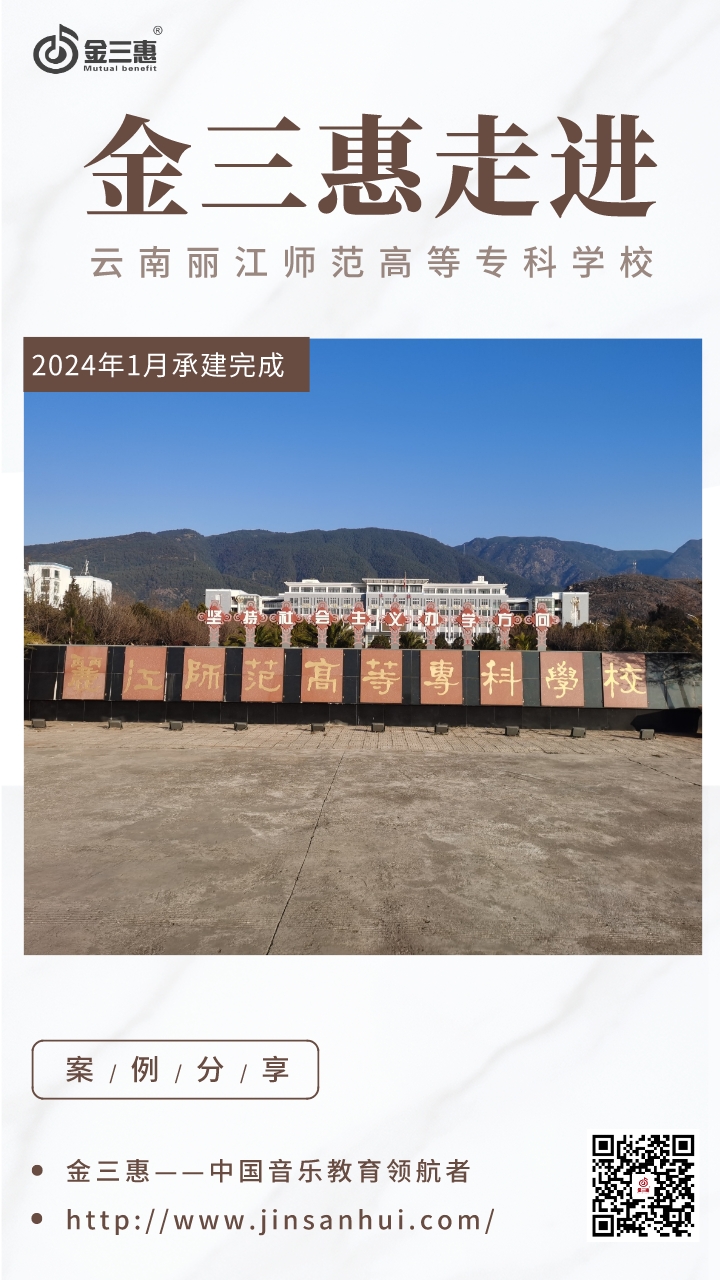2024年1月,金三惠數(shù)字音樂教室走進(jìn)云南麗江師范高等專科學(xué)校,為學(xué)校提供了60+1的電鋼琴教室,配備了金三惠電鋼琴教學(xué)系統(tǒng)、電鋼琴、數(shù)字音樂教學(xué)儀等教學(xué)教具等。