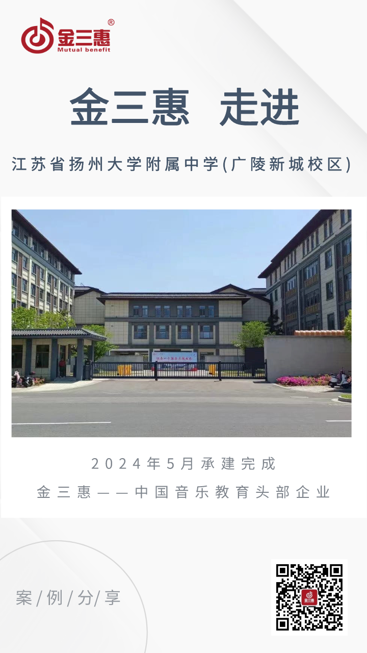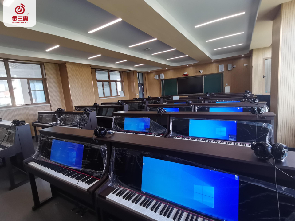2024年5月,金三惠數字音樂教室為江蘇省揚州大學附屬中學(廣陵新城校區)提供、安裝、培訓的24+1智慧音樂素養教室正式開始使用!配備了金三惠教學系統、電鋼琴、數字音樂教學儀等教學教具。