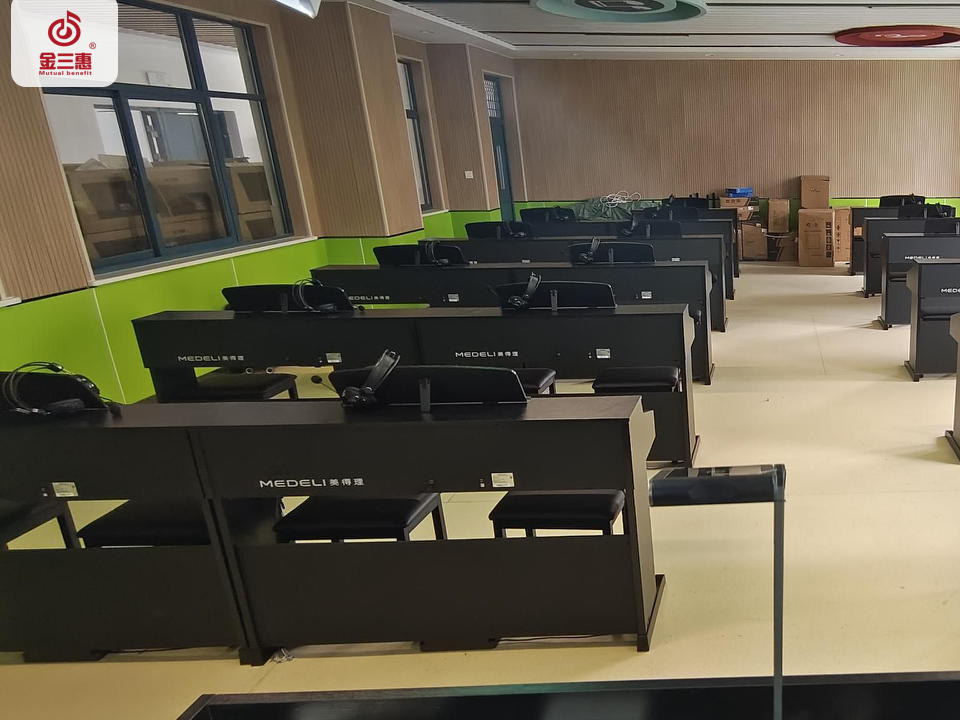 金三惠數字電鋼琴教室,功能豐富、穩定實用、兼容性強�?梢哉w裝配,亦可單獨定制。全面滿足用戶各種需求。是鋼琴教學與實訓的專業教室。支持教師、學生規律的、科學的、恒久的訓練。