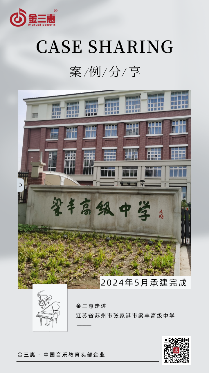 2024年5月,金三惠數(shù)字音樂(lè)教室為江蘇省蘇州市張家港市梁豐高級(jí)中學(xué)提供、安裝、培訓(xùn)的14+1智慧音樂(lè)素養(yǎng)教室正式開始使用!配備了金三惠教學(xué)系統(tǒng)、電鋼琴、數(shù)字音樂(lè)教學(xué)儀等教學(xué)教具。