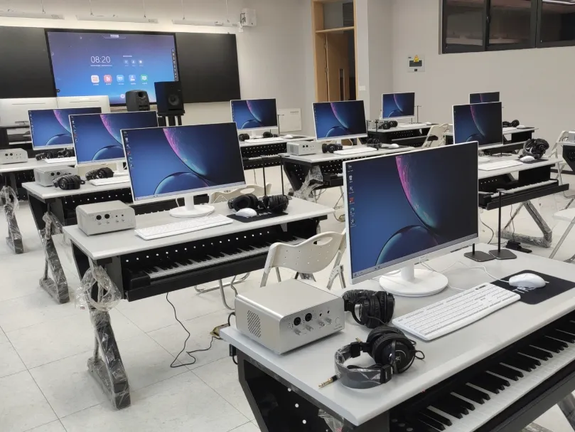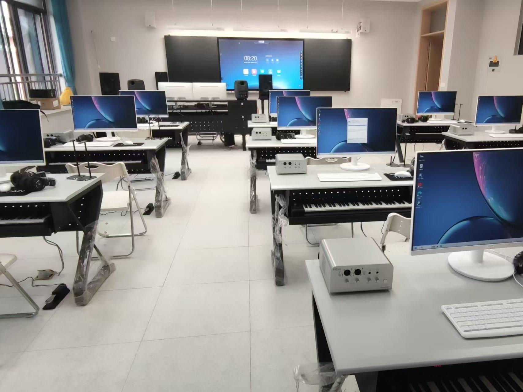 MIDI音樂教室需要將影音傳意所涉及到的電視構圖、光影構成、色彩構成、時序構成等影音語法規則的系統介紹,揉合到設備、軟件的操作使用中。中心配置先進的影音軟件制作系統、監聽系統、音響系統及高檔電腦,以便讓學生學到系統性和實用性的影音知識。