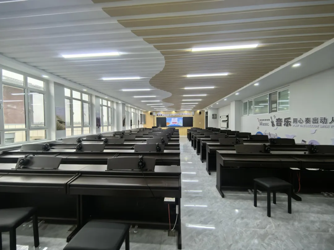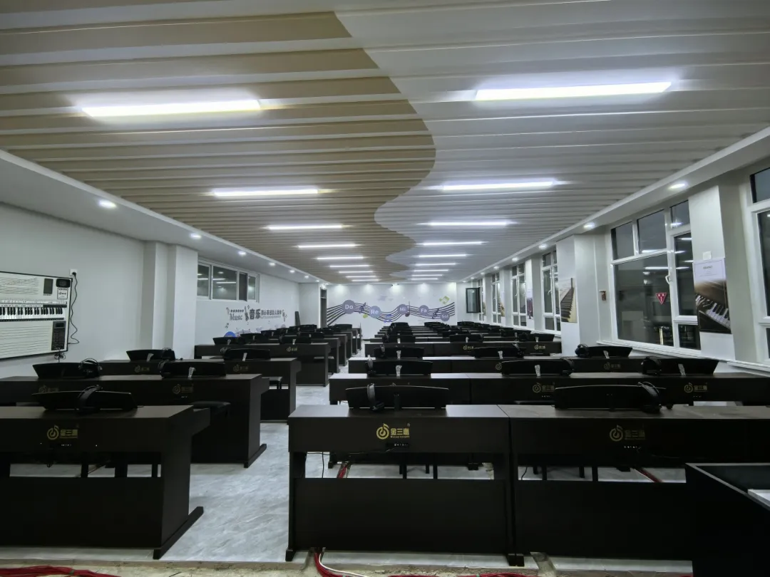 2024年10月,金三惠數字音樂教室走進新疆阿克蘇地區拜城縣第五小學,為學校提供了48+1的電鋼琴教室,配備了金三惠電鋼琴教學系統、電鋼琴、數字音樂教學儀等教學教具等。