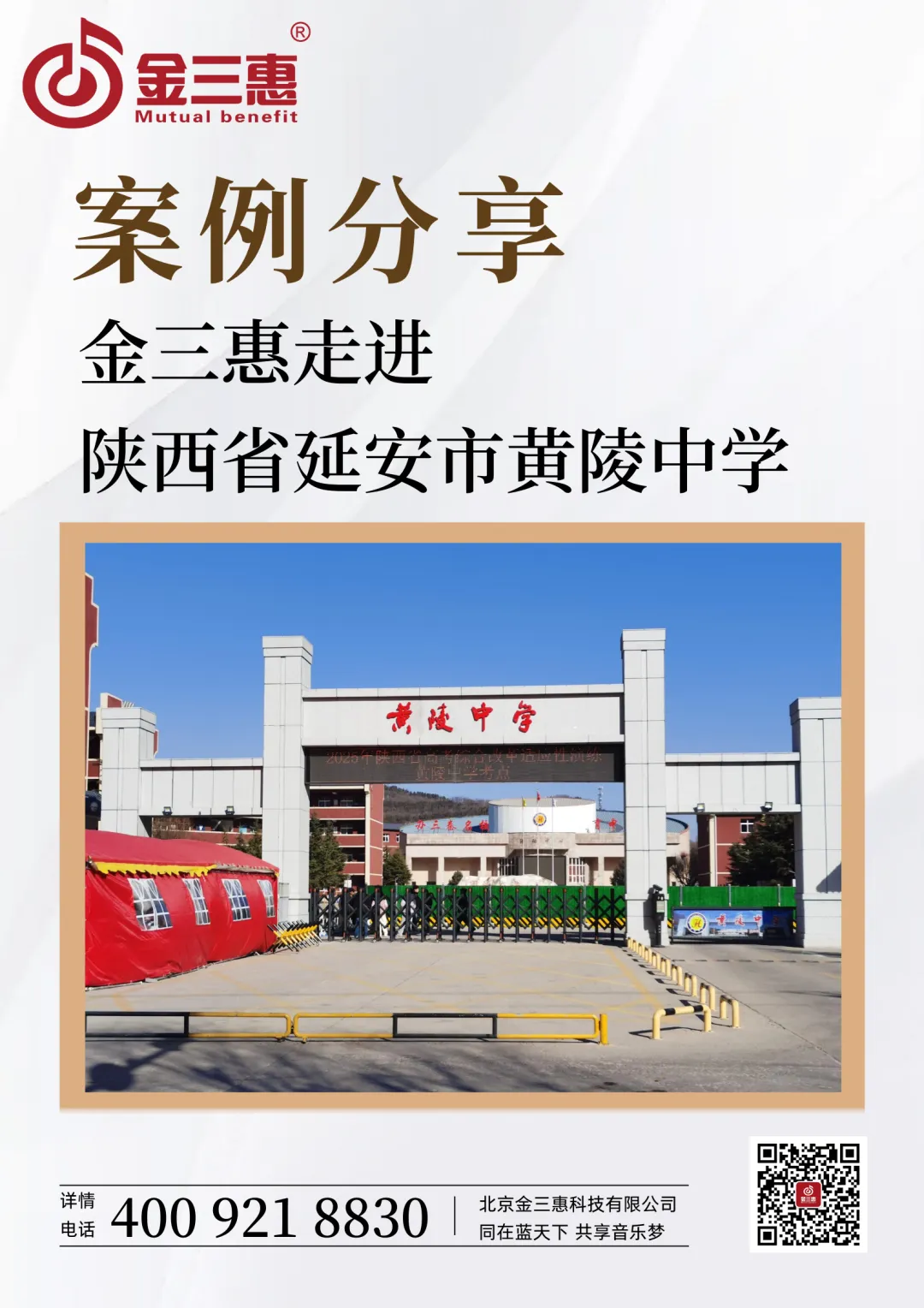 2025年1月,金三惠數字音樂教室走進陜西省延安市黃陵中學,為學校提供了兩套25+1的電鋼琴教室,配備了金三惠電鋼琴教學系統、電鋼琴、數字音樂教學儀等教學教具等。