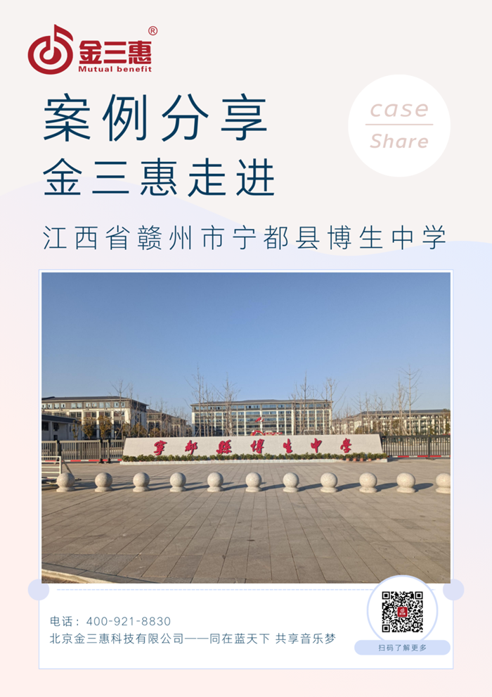2025年1月,金三惠數字音樂教室走進寧都縣博生中學,為學校提供了兩間36+1的電鋼琴教室,配備了金三惠電鋼琴教學系統、電鋼琴、數字音樂教學儀等教學教具等。