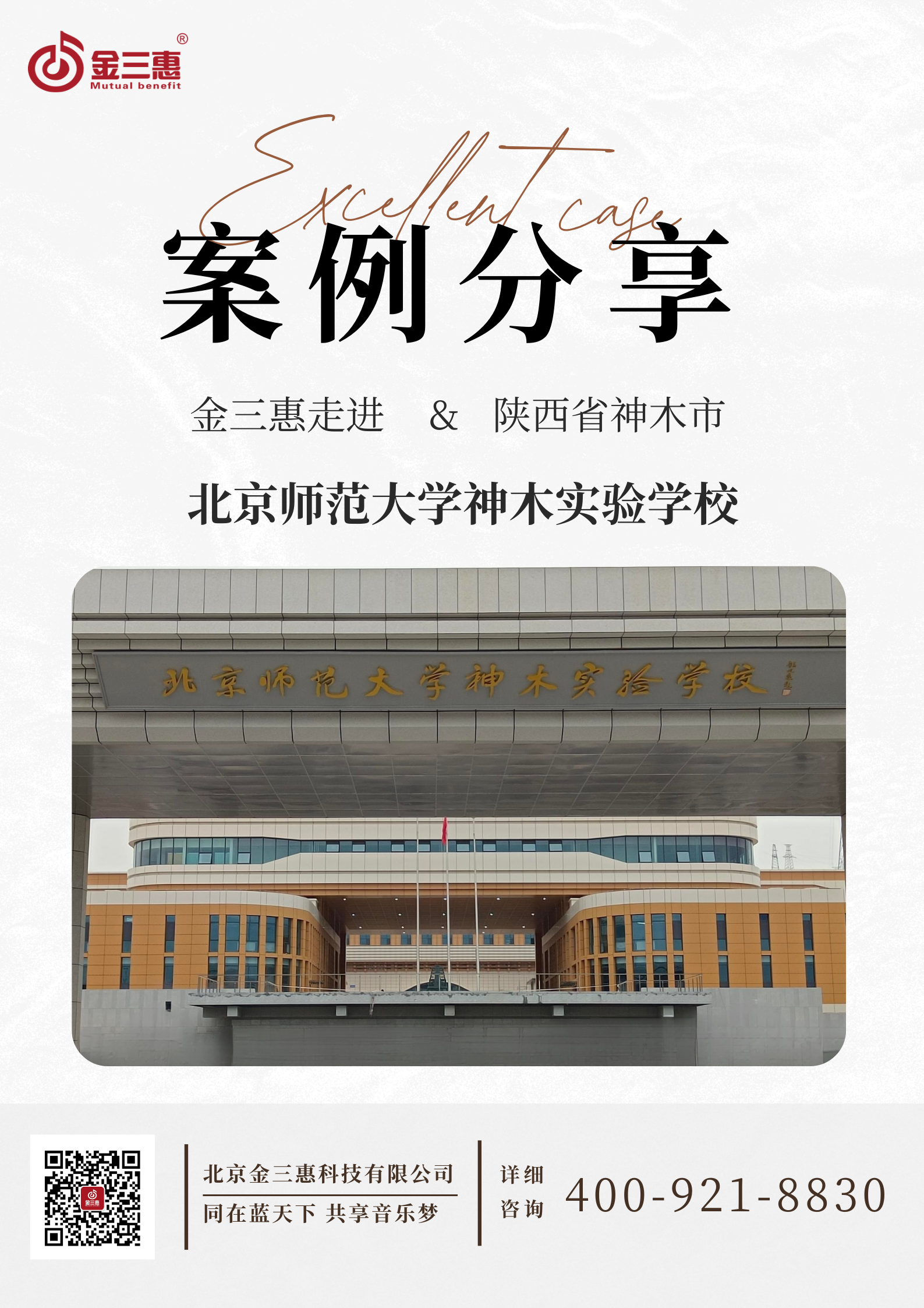 2025年8月,金三惠音樂(lè)教室走進(jìn)陜西省神木市北京師范大學(xué)神木實(shí)驗(yàn)學(xué)校,為學(xué)校提供了24+1的智慧音樂(lè)素養(yǎng)教室,配備了金三惠數(shù)字音樂(lè)教學(xué)系統(tǒng)、電鋼琴、數(shù)字音樂(lè)教學(xué)儀等。