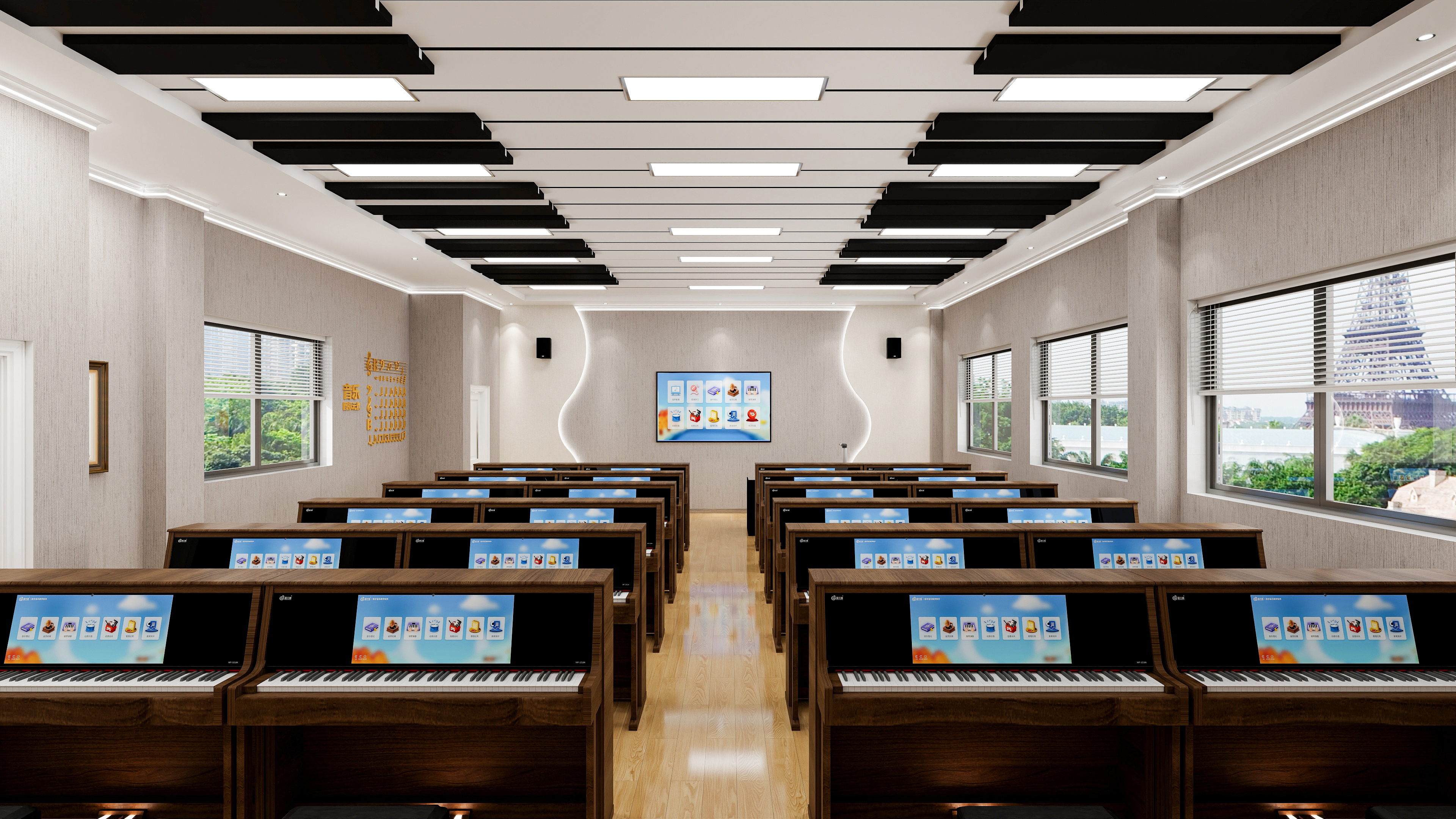 以全面提升學(xué)生音樂(lè)素養(yǎng)為目標(biāo),以智慧電鋼琴為載體搭載數(shù)字音樂(lè)教學(xué)系統(tǒng),實(shí)現(xiàn)學(xué)生審美感知、藝術(shù)表現(xiàn)、創(chuàng)意實(shí)踐、文化理解的全面發(fā)展,將核心素養(yǎng)的培養(yǎng)貫穿始終,實(shí)現(xiàn)教、學(xué)、練、考綜合一體化的智慧音樂(lè)素養(yǎng)教室。