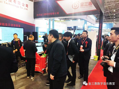 不僅觀眾對金三惠的產(chǎn)品非常熱情,教育裝備中心多位領(lǐng)導(dǎo)也來到金三惠的展臺,參觀體驗和指導(dǎo),同行也一樣關(guān)注金三惠數(shù)字音樂創(chuàng)客教室,體現(xiàn)了高層領(lǐng)導(dǎo)和同行們對于數(shù)字音樂教育產(chǎn)品發(fā)展的重視和關(guān)注。