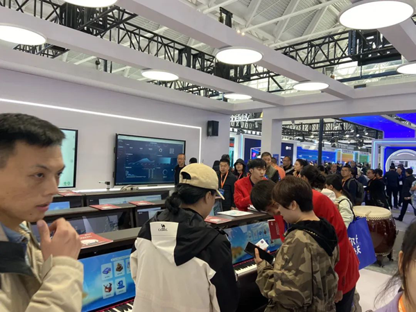 展會(huì)現(xiàn)場(chǎng),金三惠電鋼琴新品亮相,以場(chǎng)景化的形式展現(xiàn)科技賦能教育的美好圖景,全面展示了金三惠深厚的技術(shù)實(shí)力。現(xiàn)場(chǎng)領(lǐng)導(dǎo)專家、老師和參觀者對(duì)金三惠智能電鋼琴產(chǎn)生了濃厚的興趣,紛紛駐足,觀摩新產(chǎn)品。