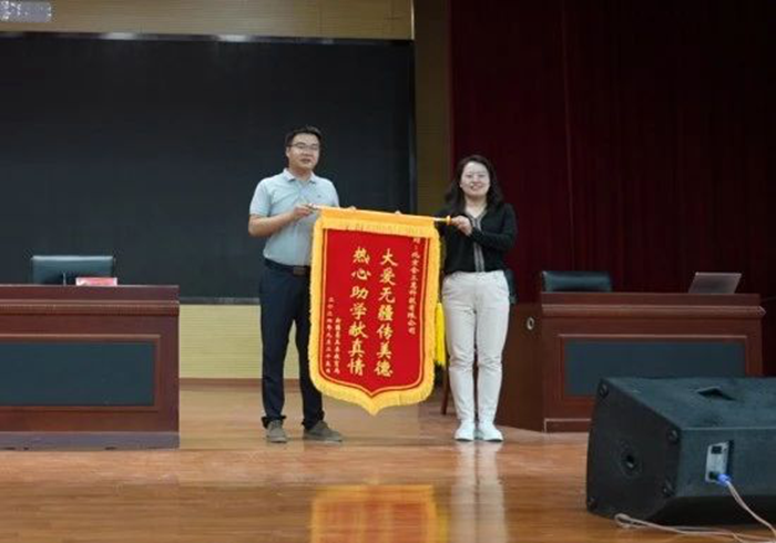 墨玉縣教育局副局長閆靖昇致辭贈送錦旗