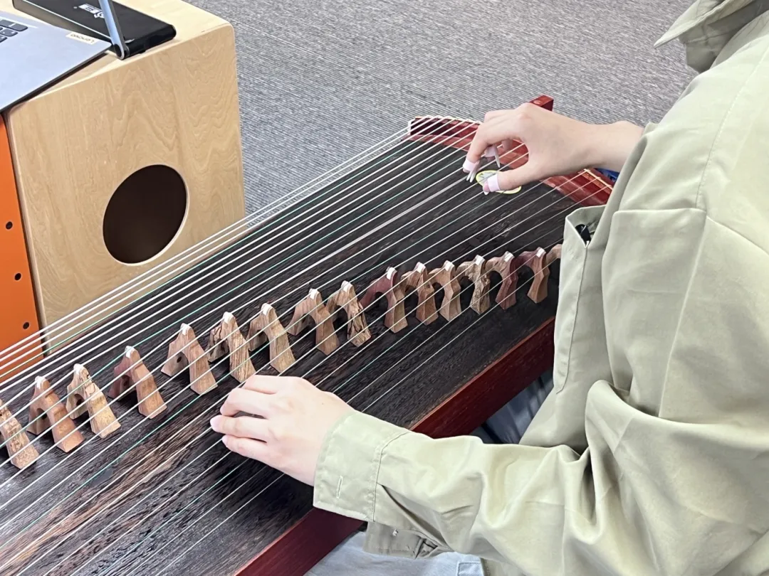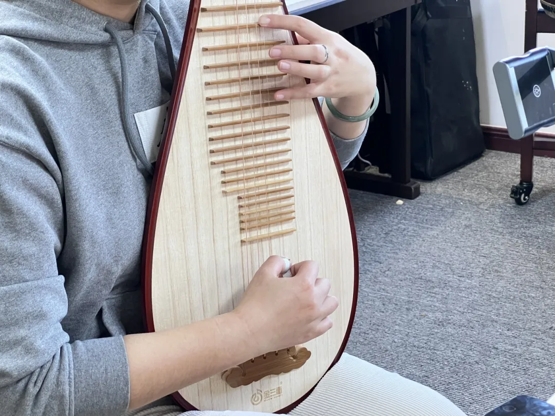 本次培訓通過線上平臺進行,老師們無論是在家中還是在學校,都能方便地參與練習并獲得專業指導。課程中,鄭詩垚老師和周琳老師將琵琶和古箏的基本指法與簡單樂曲相結合,不僅傳授樂曲的彈奏技巧,還強化了老師們的基本功。