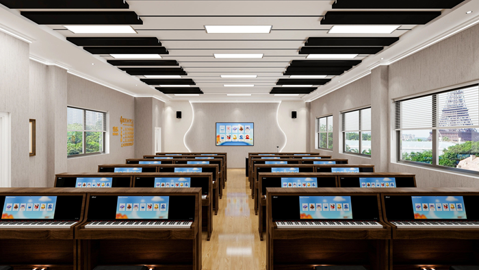 以智慧電鋼琴為載體搭載數字音樂教學系統,實現教、學、練、考綜合一體化