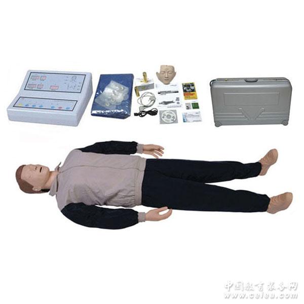 產品詳細介紹產品介紹: 第八代HL/CPR300高級全自動電腦心肺復蘇模擬人,采用美國美國心臟學會(AHA)2015國際心肺復蘇(CPR)&心血管急救(ECC)新指南標準,經國內權威專家建議指導下,集國外同類產品之長處及公司科技人員的共同努力,率先開發出專門針對社會心肺復蘇普及與醫學院校、醫療衛生系統、電力系統單位、工礦企業、交通部門單位等各種需要現場救生技術的單位部門進行急救培訓使用的高檔型最新產品,其造型更完美、功能更強大、操作更方便的領先產品。 執行標準:美國心臟學會(AHA)2015國際心肺復蘇(CPR)&心血管急救(ECC)新指南標準。 功能特點: • 模擬標準氣道開放。 • 人工手位胸外按壓指示燈顯示,數碼記數顯示,語言提示: 1) 按壓位置正確,錯誤的指示燈顯示,數碼記數顯示,錯誤的語言提示; 2) 按壓強度正確(5-6cm區域),錯誤(小于5cm大于正確區域)的顯示分別由(黃燈-過少、綠燈-適時、紅燈-過大)數碼指示燈顯示CPR按壓深度正確,錯誤的數碼記數顯示及錯誤的語言提示; • 人工口對口呼吸(吹氣)的指示燈顯示、數碼計數顯示、語言提示: 1) 吹入的潮氣量≤500ml-600m-1000mll≤的顯示分別由(黃燈-過少、綠燈-適時、紅燈-過大)數碼指示燈顯示吹氣量度;正確、錯誤的數碼計數顯示及錯誤的語言提示; • 按壓與人工呼吸比:30∶2(單人或者雙人); • 操作周期:先有效胸外按壓30次再有效2次人工吹氣既30:2五個循環周期CPR操作; • 操作頻率:最新國際標準:100-120次/分鐘; • 操作方式:訓練操作,考核操作; • 操作時間:以秒為單位時間計時; • 語言設定:可進行語言提示設定或關閉語言提示設定; • 成績打印:操作結果可熱敏打印成績單; • 檢查瞳孔、頸動脈反應:模擬人搶救成功后,瞳孔由散大變為縮小,頸動脈出現自主搏動。 • 電源狀態:采用220V外接電源,經過穩壓器輸出電源24V。 材料特點:面皮膚、頸皮膚、胸皮膚、頭發,采用進口熱塑彈性體混合膠材料,由不銹鋼模具、經注塑機高溫注壓而成,具有解剖標志準確、手感真實、膚色統一、形態逼真、外形美觀、經久耐用、消毒清洗不變形,拆裝更換方便等特點,其材料達到國外同等水平。 標準套配置: • 高級復蘇全身模擬人一具; • 高級電腦顯示器一臺; • 豪華手拉式人體硬塑箱一只; • 復蘇操作墊一條; • 一次性消毒屏障面膜(50張/盒)一盒; • 可換肺囊裝置四套; • 可換臉皮一張; • 熱敏打印紙兩卷; • 使用手冊一本;