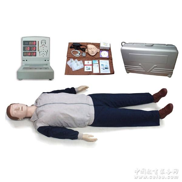 產品詳細介紹執行標準:美國心臟學會(AHA)2015國際心肺復蘇(CPR)&心血管急救(ECC)指南標準 功能介紹: • 模擬標準氣道開放; • 人工手位胸外按壓時: 1) 動態條碼指示燈顯示按壓深度:按壓深度正確(5-6cm區域) 由條碼綠燈顯示、按壓深度不夠(小于5cm)由條碼黃色、按壓深度過深(大于6cm)由條碼紅色指示燈移動的動態反饋顯示CPR按壓深度。 2) 液晶計數顯示;詳細記錄按壓錯誤的具體原因(按壓力量過大、按壓力量過小、按壓位置不對及正確的次數)。 3) 語言提示:中文語音提示,詳細提示按壓錯誤的具體原因,以便訓練者及時改正。 • 人工口對口呼吸(吹氣)時: 1) 動態條碼指示燈顯示潮氣量:吹入的潮氣量正確(500ml~600ml-1000ml)由條碼綠燈顯示、吹入的潮氣量過小或過大分別由條碼黃色或條碼紅色指示燈移動的動態反饋顯示潮氣量度; 2) 液晶計數顯示:詳細記錄吹氣錯誤的具體原因(按吹氣量過大、吹氣力量過小、及吹氣正確的次數) 3、語言提示:中文語音提示,詳細提示吹氣錯誤的具體原因,以便訓練者及時改正。 • 按壓與人工呼吸比:30:2(單人或雙人) • 操作周期:有效30次按壓及2次人工吹氣, 30:2五個循環周期CPR操作。 • 操作頻率:最新國際標準:100-120次/分鐘。 • 操作方式:訓練操作;考核操作(專業考核、普及考核)。 • 操作時間:以秒為單位計時。 • 語言設定:可進行語言提示設定及提示音量調節設定;或關閉語言提示設定。 • 檢查瞳孔:縮小和散大對比。材料特點:面皮膚、頸皮膚、胸皮膚、頭發,采用進口熱塑彈性體混合膠材料,由不銹鋼摸具、經注塑機高溫注壓而成,具有解剖標志準確、手感真實、膚色統一、形態逼真、外形美觀、經久耐用、消毒清洗不變形、拆裝更換方便等特點,其材料達到國外同等水平。 標準套配置: • 高級復蘇全身人體模型一具; • 高級電腦數碼顯示器一臺; • 豪華手拉推式人體硬塑箱一只; • 復蘇操作墊一條; • 屏障面膜(50張/盒)一盒; • 可換肺囊裝置四套; • 可換面皮一只; • 2015國際最新操作指南光盤1盤 • 現場急救常用技術使用手冊 1 本 • 使用說明書一本。 • 保修卡、合格證;