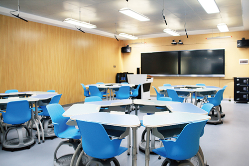 錄播教室作為信息化教育重要的推動力,在建設錄播教室需要配備有電子白板、多媒體教學平臺、高清攝錄系統(tǒng),具有實時錄播、現(xiàn)場編輯、現(xiàn)場直播等多種功能,可進行課例錄像、網絡直播。評課區(qū)配備兩臺大屏幕電視,音響,可同步實時觀看教室內的上課情況,在不影響上課的同時可開展教學研討活動。