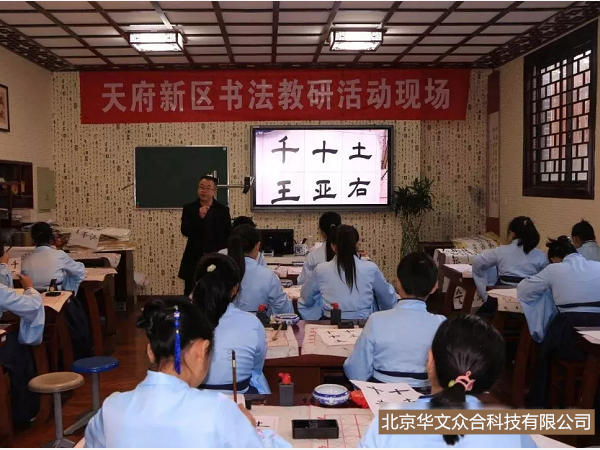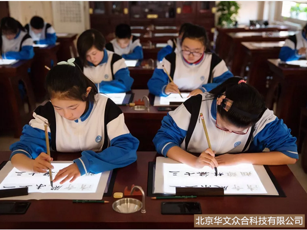 北京華文眾合科技有限公司(以下簡稱“華文眾合”)是專注于智慧書法教育的國家高新技術企業,是《中小學智慧書法教室裝備規范》的標準提出單位和牽頭制定單位。2015年構建智慧書法教室模型并首次推向市場;2016年發明交互式數字臨摹臺;2017年獲北京市政府創新項目基金支持,并獲得《北京市新技術新產品(服務)證書》;2018年2月在中國教育裝備行業協會的領導下牽頭制定《中小學智慧書法教室裝備規范》團體標準,該標準于2019年6月3日發布,7月1日實施;2019年華文眾合智慧書法教室被評為第76屆中國教育裝備展示會金獎產品,連續入選2018、2020中國教育裝備行業協會年度推薦產品;2019年入選“中關村高新技術企業2019高成長TOP100”。