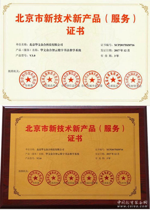 此項(xiàng)資質(zhì)的頒發(fā)充分證明了華文眾合的“智云+數(shù)字書法教學(xué)系統(tǒng)”在技術(shù)與服務(wù)上均躋身于行業(yè)領(lǐng)先水平,得到了國家權(quán)威部門的肯定。