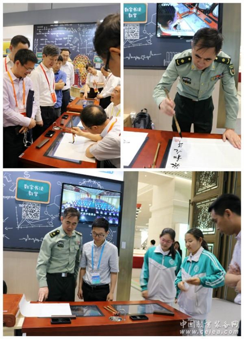 軍人,學(xué)生,小朋友等各種年齡各種職業(yè)的體驗(yàn)者絡(luò)繹不絕,把展位圍得水泄不通,爭(zhēng)相揮毫潑墨,都想先體驗(yàn)一把數(shù)字書(shū)法的魅力,寫(xiě)一張自己滿意的作品。