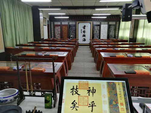 華文眾合數(shù)字書法教室使用傳統(tǒng)的筆、墨、紙、氈來進行教和學(xué),每位學(xué)生都有一臺交互式數(shù)字書法臨摹臺,通過臨摹臺可以清晰看到教師從整體到細節(jié)的書寫示范,通過臨摹臺學(xué)生可以播放書法家的書寫視頻,講解書法的執(zhí)筆運筆,分析漢字的字形結(jié)構(gòu)與篇章布局,幫助學(xué)生理解書法的奧妙。德昌縣第二完全小學(xué)的學(xué)生們可以通過臨摹臺查閱臨摹古代書法大家的真跡作品,通過趣味動畫視頻了解書法知識和典故,在交互式數(shù)字臨摹臺上觀看名家書寫示范視頻,使用邊看邊練、六步練習(xí)法等多種方式進行學(xué)習(xí)。