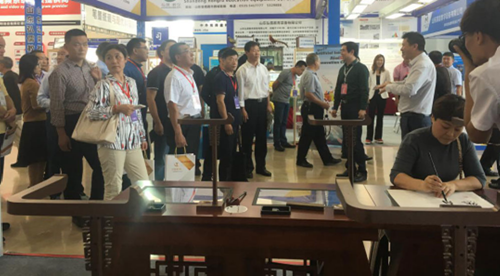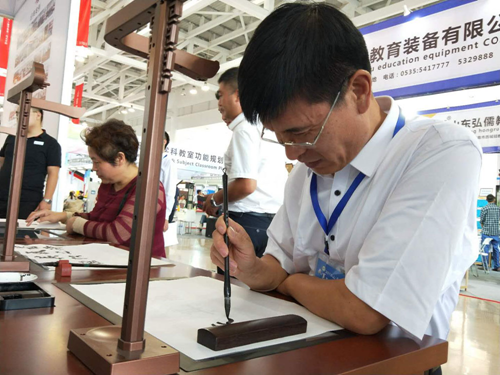 2018年9月28日至30日,由山東省教育廳、臨沂市政府主辦的“2018山東省教育裝備博覽會”在臨沂國際博覽中心舉行。國內首家書法教育云平臺、國家高新技術企業——北京華文眾合科技有限公司攜最新一代智慧書法教室整體解決方案隆重亮相,本屆展會華文眾合推出的“多模教學”成為展會的一大熱點,展會現場前來體驗的觀眾絡繹不絕,紛紛表示出極大的興趣。
