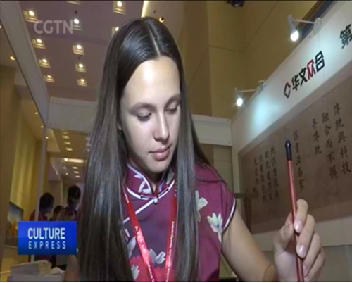 CGTN報道孔院大會中的明星產(chǎn)品,華文眾合智慧書法教室是其中之一