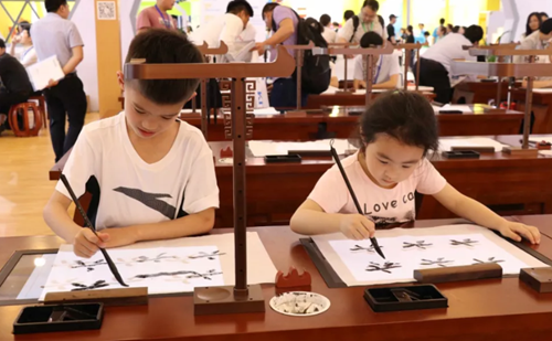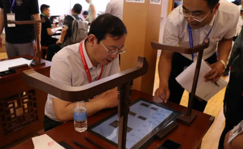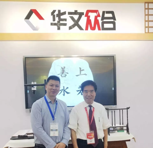 華文眾合此次展出的新產(chǎn)品——第五代智慧書法教室充滿古韻,同時又不失現(xiàn)代科技感,深受廣大觀眾喜愛。