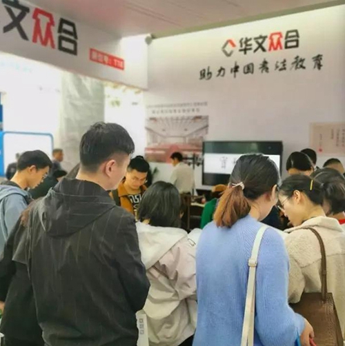 11月15日,2019中國未來教育與智慧裝備展示會在南京國際展覽中心隆重開幕。華文眾合攜智慧書法教室參展,吸引大批觀眾駐足體驗。