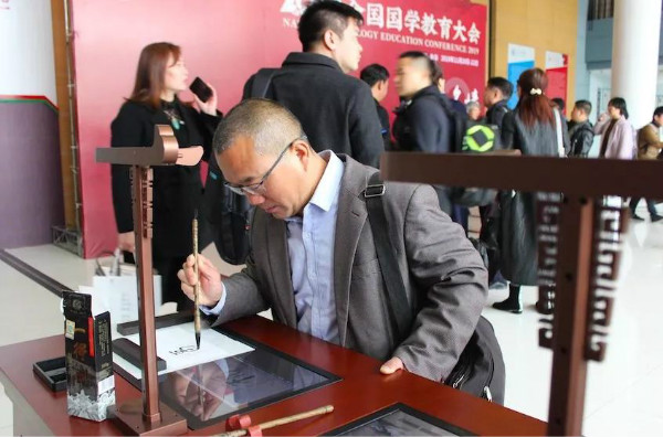 作為國學(xué)精粹的傳統(tǒng)書法文化是此次會議的熱門議題,會議期間展出了華文眾合第六代智慧書法教室。參會領(lǐng)導(dǎo)及嘉賓駐足參觀、體驗(yàn),興致高昂。