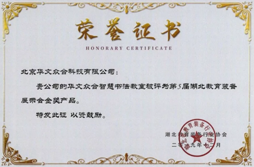 12月初,第5屆湖北教育裝備展示會(huì)金獎(jiǎng)產(chǎn)品評(píng)選結(jié)果公示, 經(jīng)過(guò)現(xiàn)場(chǎng)展示、專(zhuān)家現(xiàn)場(chǎng)評(píng)審等環(huán)節(jié),華文眾合智慧書(shū)法教室榮獲金獎(jiǎng)。近日,證書(shū)新鮮出爐!