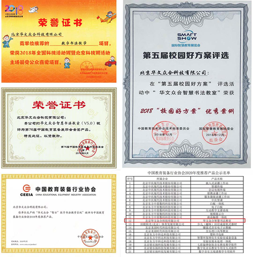 此前,華文眾合“數(shù)字書(shū)法教學(xué)”項(xiàng)目榮獲2018全國(guó)科技周暨北京科技周活動(dòng)主場(chǎng)最受公眾喜愛(ài)項(xiàng)目;華文眾合智慧書(shū)法教室榮獲2018“校園好方案”優(yōu)秀案例;2019年華文眾合智慧書(shū)法教室被評(píng)為第76屆中國(guó)教育裝備展示會(huì)金獎(jiǎng)產(chǎn)品,連續(xù)入選2018、2020中國(guó)教育裝備行業(yè)協(xié)會(huì)年度推薦產(chǎn)品。