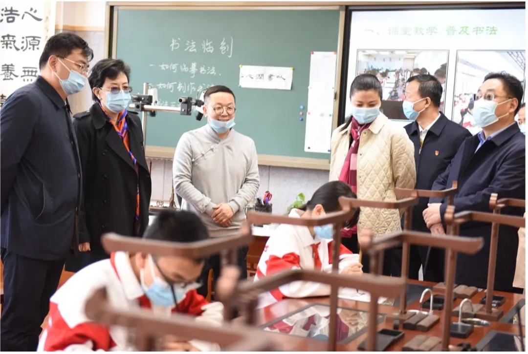 靳諾一行到學校特色智慧書法教室觀看師生現(xiàn)場教學展示