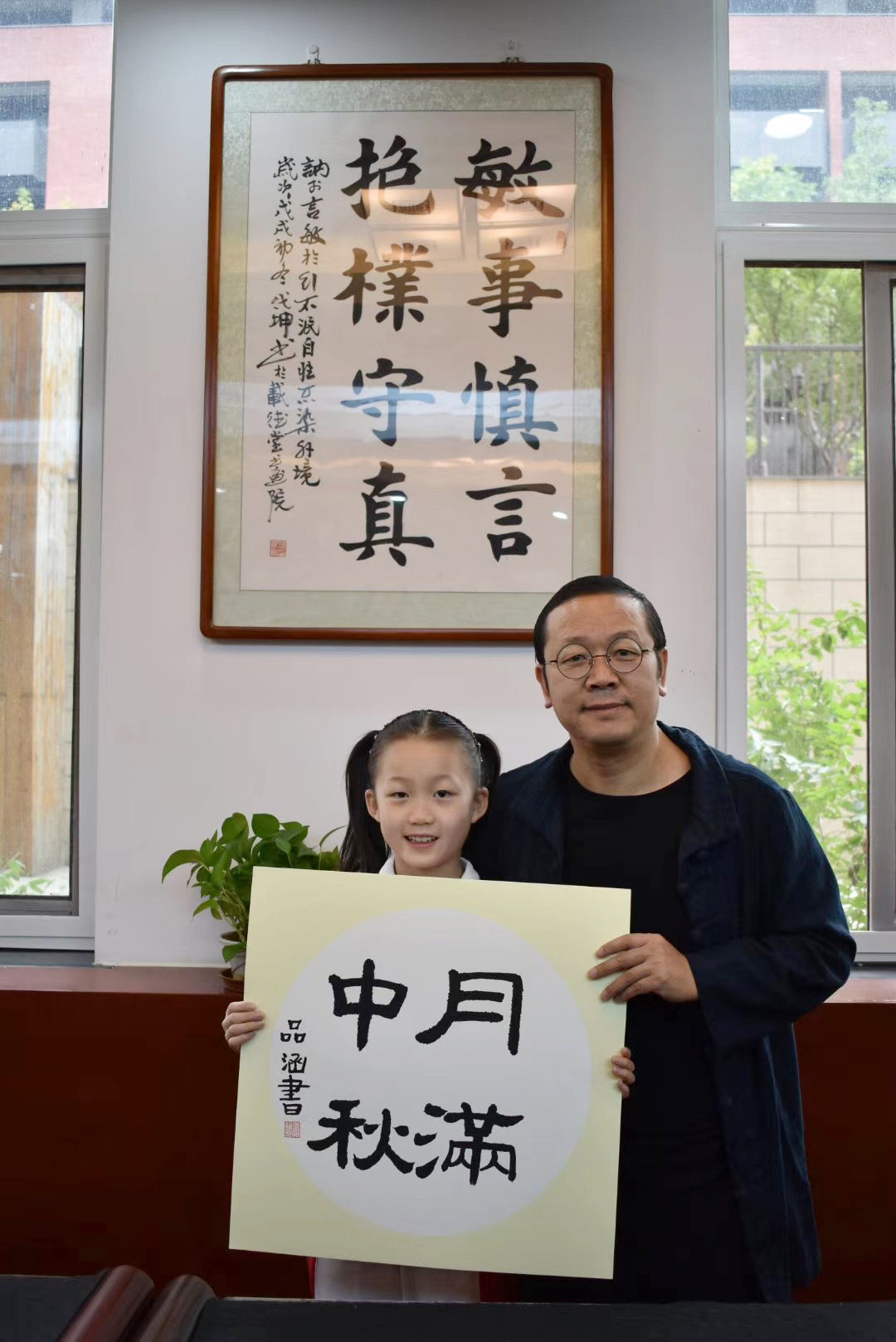 人大附中豐臺學校學生衛(wèi)品涵與書法老師何代坤合影