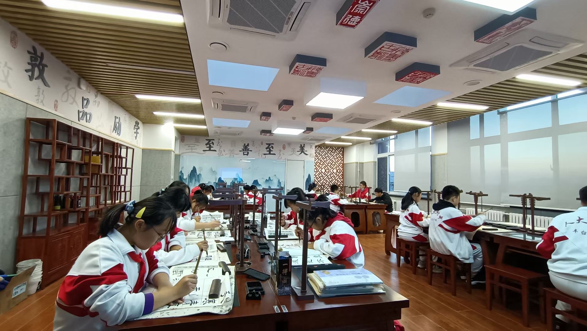 人大附中豐臺學校學生們在華文眾合智慧書法教室里上課