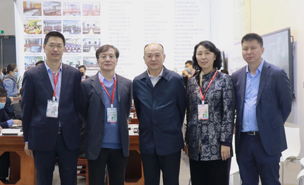 △北京市教育裝備行業協會會長柴旭津(左二)、北京市教育裝備行業協會秘書長陳謙(左三)前來參觀指導