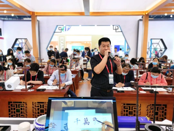 針對(duì)第七代智慧書法教室的功能與亮點(diǎn),工作人員為參觀者進(jìn)行了詳細(xì)講解。
